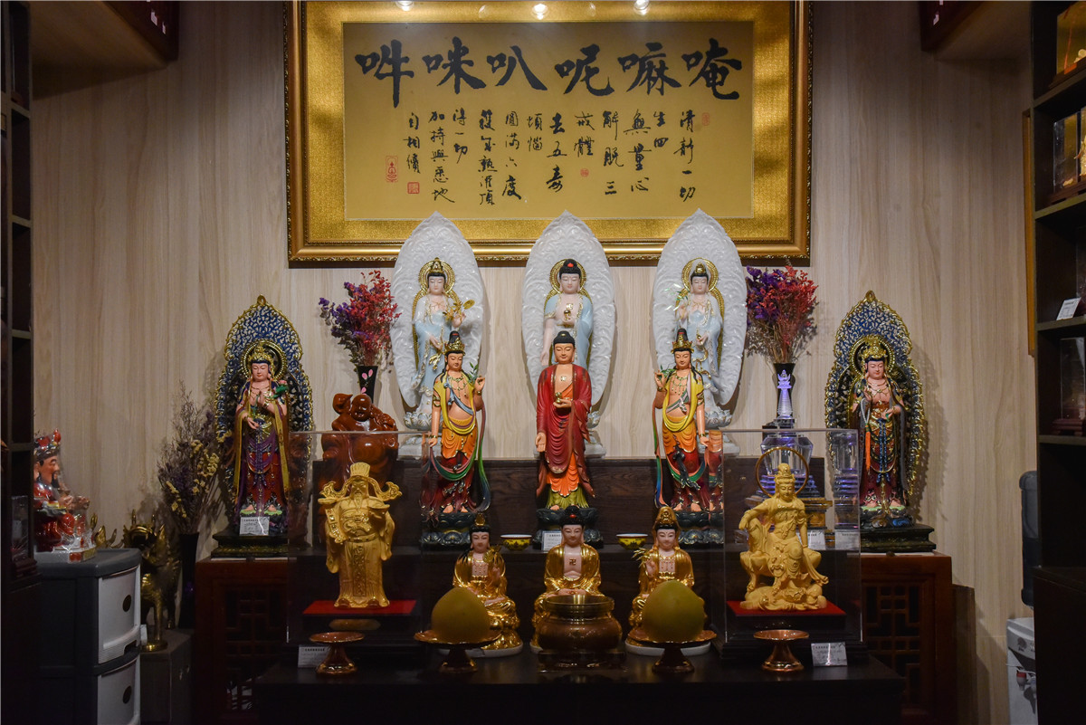 文殊院法物流通处是文殊院佛教信仰相关法物(商品)的经营场所,游客可在此处恭请经书、佛像、佛具、挂饰等法物,用于虔心礼佛,精进修行,庄严佛堂文化,增进佛光护佑。